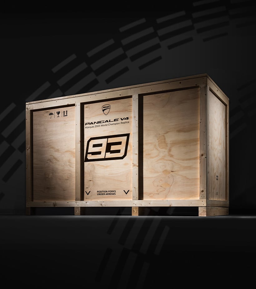 With only 293 units produced, the Panigale V4 is a true collector’s item. To complete its exclusivity, a dedicated pack includes a certificate of authenticity, a motorcycle cover and a wooden crate with dedicated graphics.