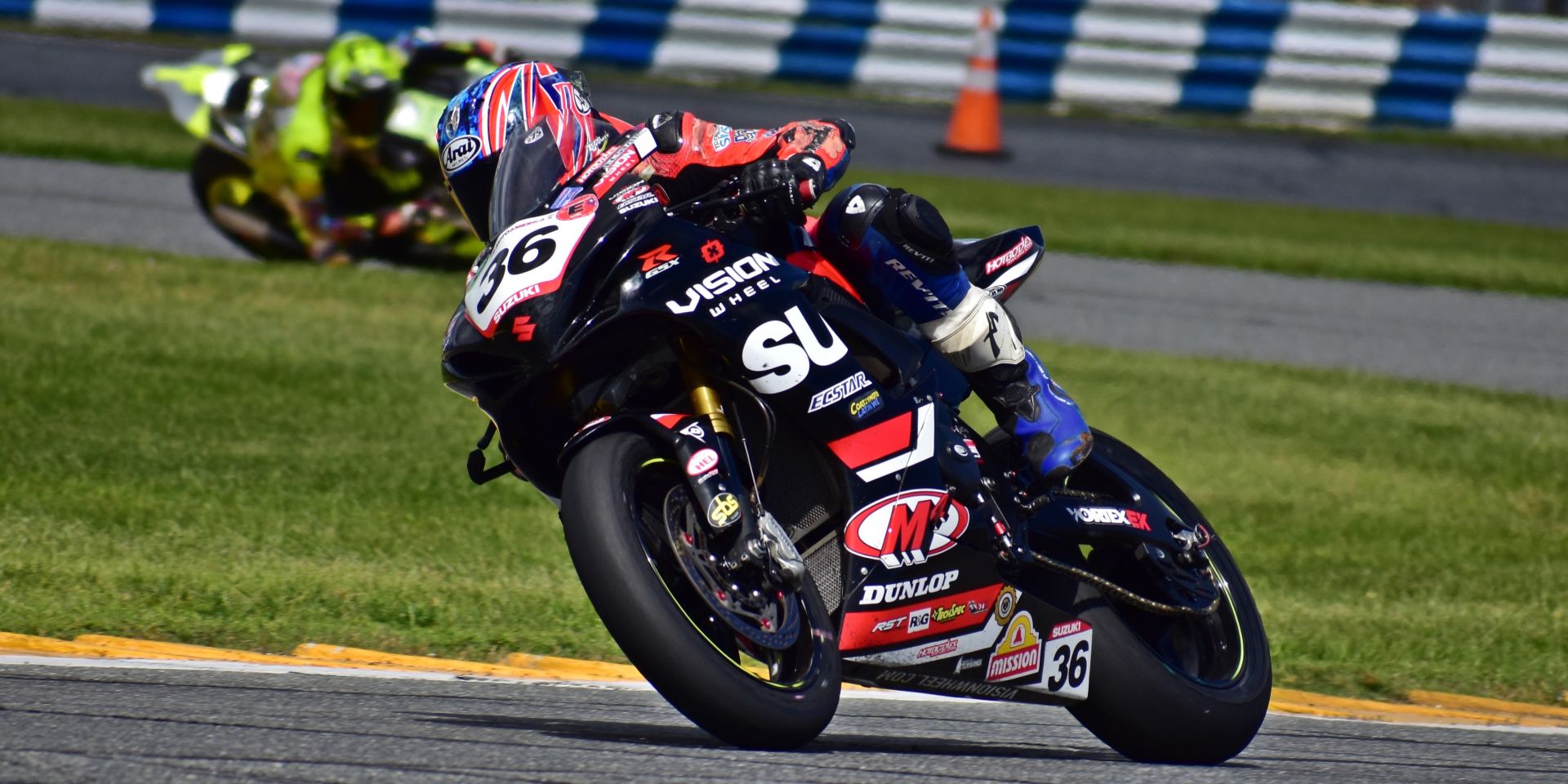 In his first trip to Daytona, MotoAmerica Talent Cup competitor Bodie Paige took a Team Hammer GSX-R750 to the win in the Heavyweight Supersport Expert sprint race, his first race on a 750cc-class machine. Shane Narbonne, listed as racing on a Yamaha YZF-R6, and Eric Wood on a Ducati Panigale V2 were second and third. Later in the day, Paige, on a GSX-R750, finished third in the Unlimited Supersport race, behind Tony Storniolo on a Kawasaki ZX-10R and Frank Babuska on a BMW M 1000 RR. Paige had shown up at Daytona to ride a Suzuki GSX-8R racebike. But Team Hammer had on hand the Vision Wheel M4 ECSTAR GSX-R750 that former Supersport National Champion Martin Cardenas had ridden at Circuit of The Americas earlier this year. The team re-sprung the machine for Paige and let him try it out, then entered him in several races over the weekend. On his first weekend on a 750, Paige’s best time was a 1:49.904, according to the official ASRA timing and scoring website. That lap time would have qualified him ninth for the 2025 Daytona 200, ahead of multi-time Daytona 200 winner Danny Eslick and Michael Dunlop, the all-time Isle of Man TT winner with 33 victories on the island to his name.