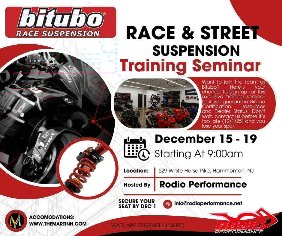 Bitubo Suspension Training Seminar happening December 15–19 (Limited to 8 Seats)