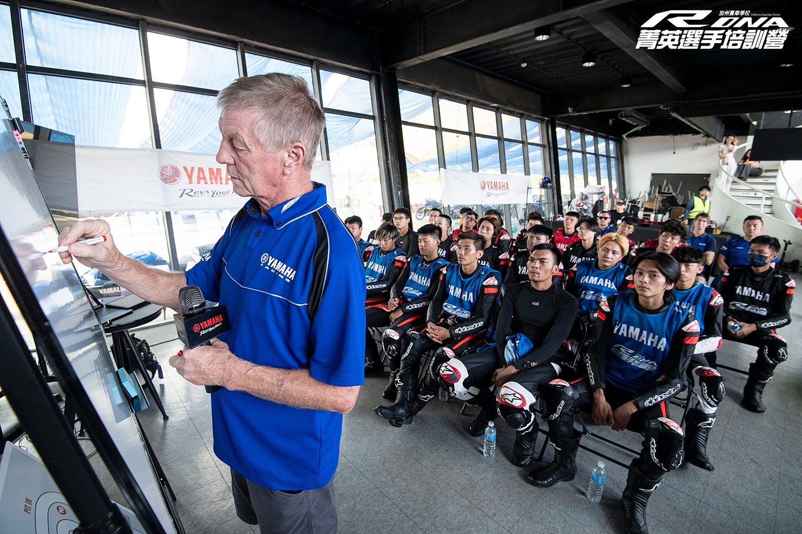 California Superbike School coach Jon Groom instructs 27 riders from Taiwan participating at an RDNA Junior Training Camp. Photos courtesy Yamaha Taiwan.