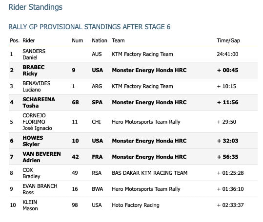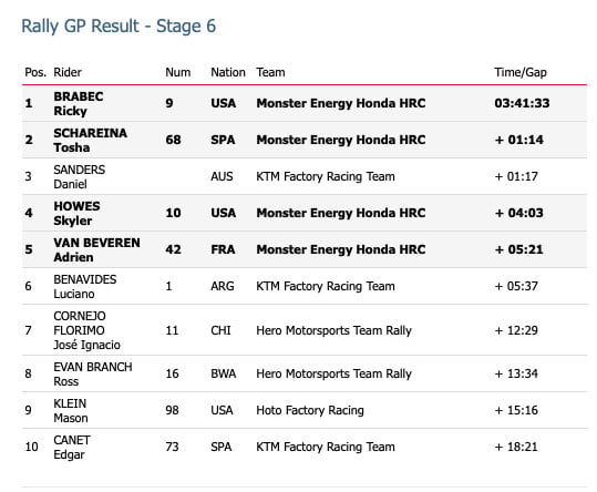 Stage six success for Monster Energy Honda HRC as Brabec wins in Riyadh.