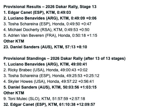 Benavides’ win – the closest in the history of the event – marks KTM’s 21st Dakar Rally title and continues a remarkable family legacy, following Dakar triumphs by his brother Kevin in 2021 and 2023.