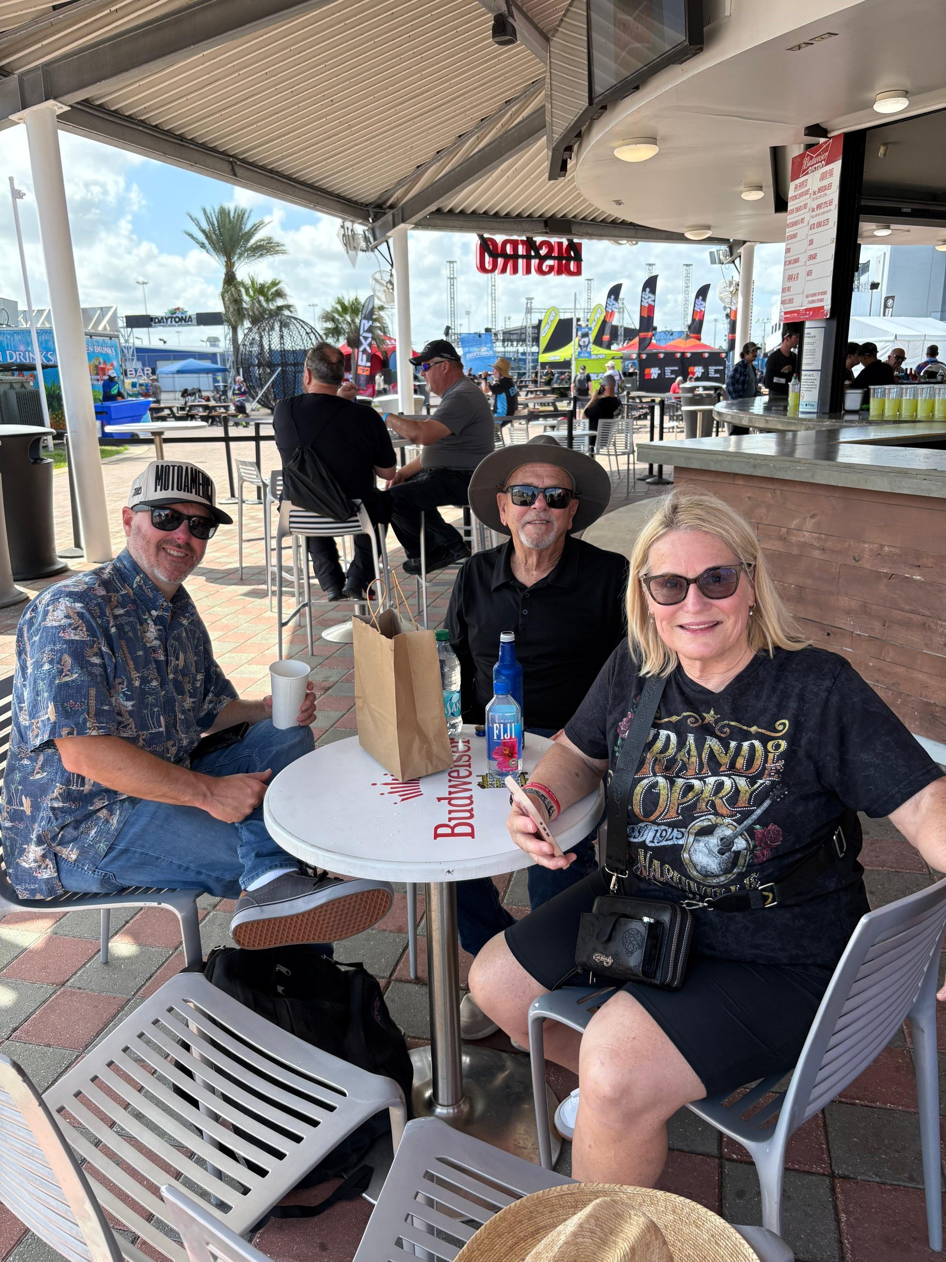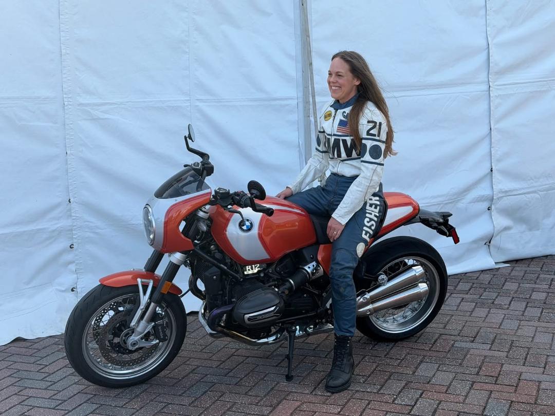 BMW celebrated the 50th anniversary of its historic win of the first AMA Superbike race with an impressive presence at Daytona International Speedway during the MotoAmerica weekend. Above, Gary Fisher’s daughter, Heidi, posed in the paddock for photos, wearing her father’s leathers.