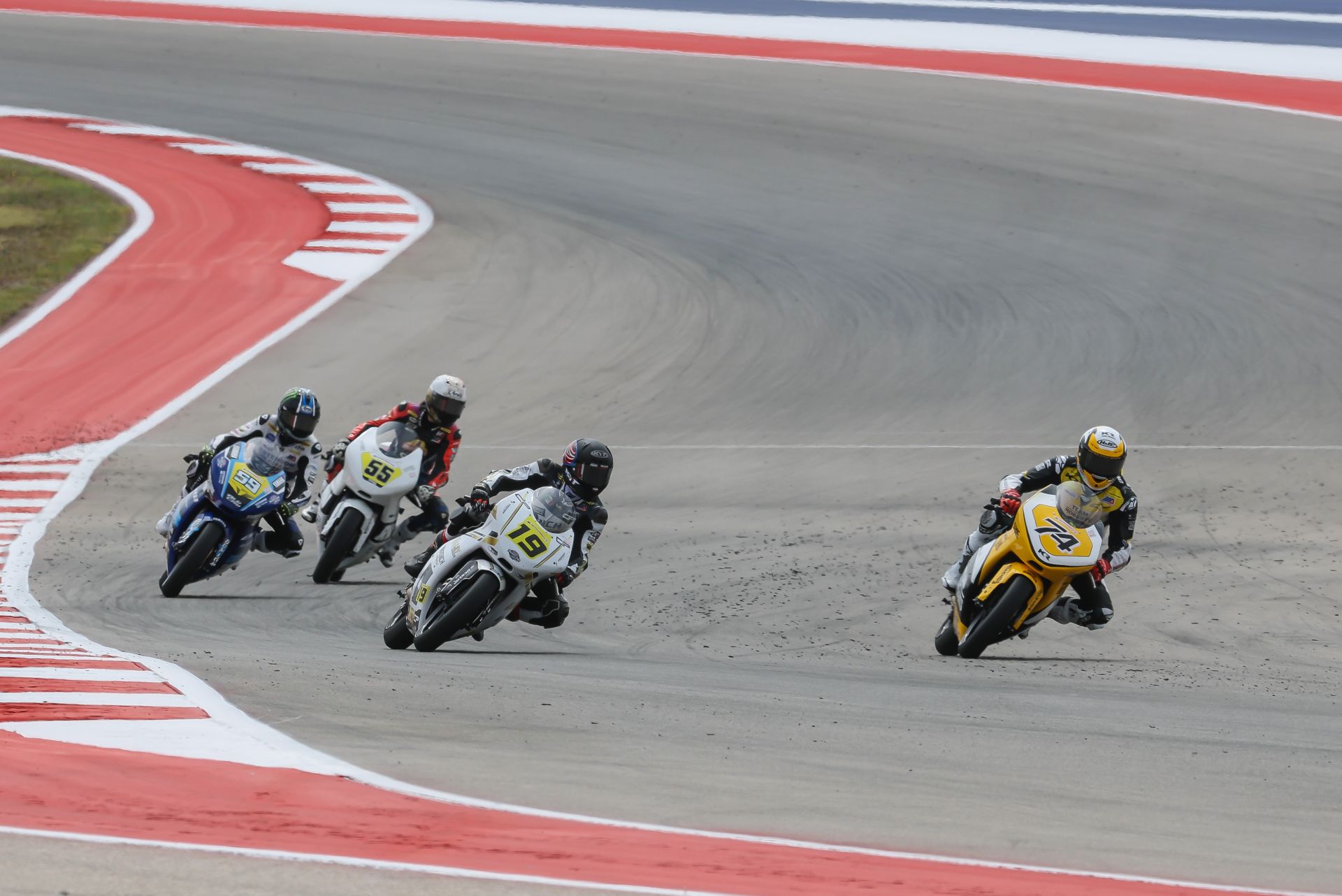 Polesitter Nathan Gouker won MotoAmerica Talent Cup Race One at Circuit of The Americas in Austin, Texas, followed closely by three of his fiercest competitors.