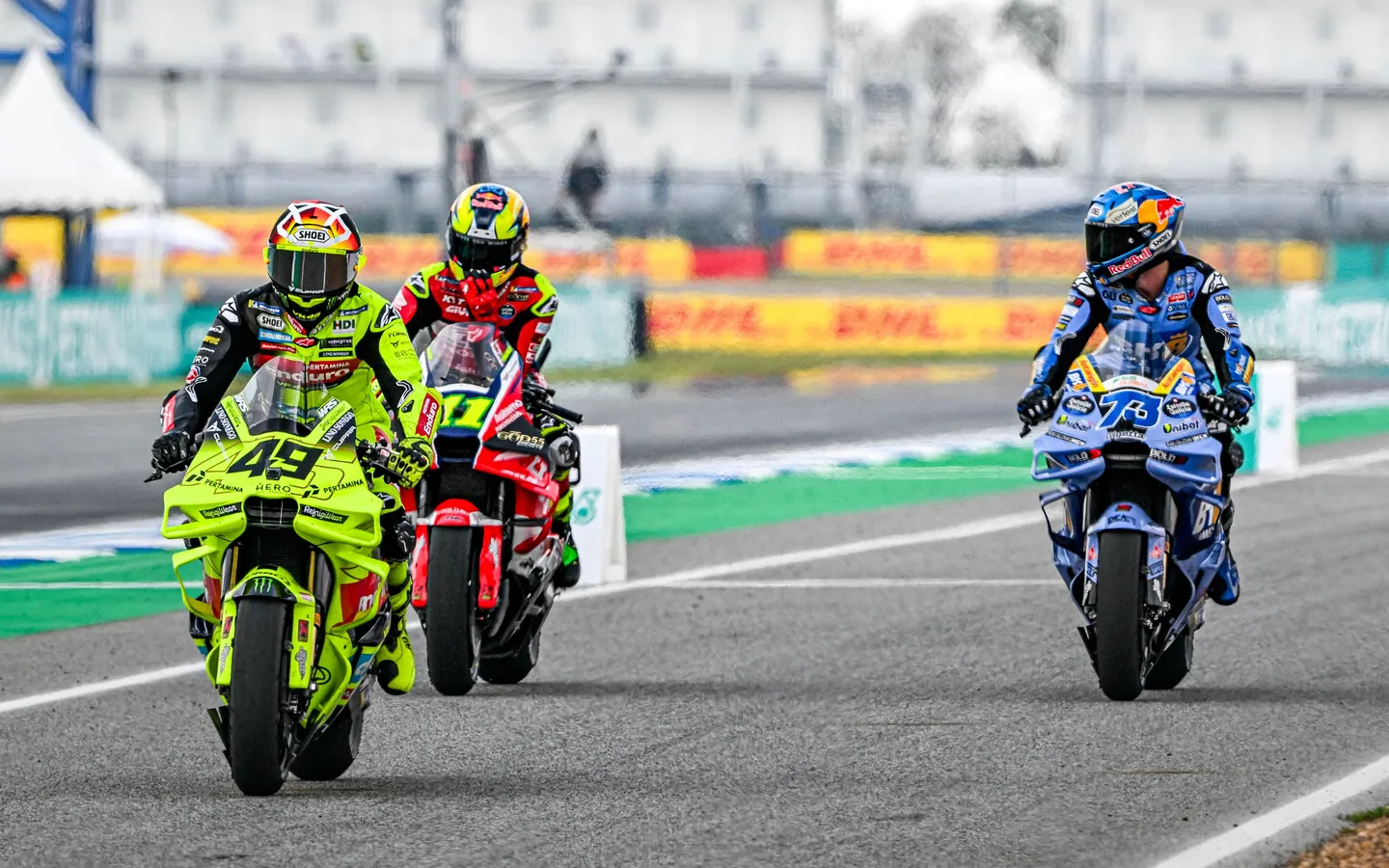 Fabio Di Giannantonio (49), Diogo Moreira (11) and Alex Marquez (73) at Buriram. Photo courtesy MotoGP.