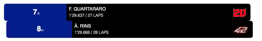 “The day started off in a positive way and I was riding well, but in the afternoon the feeling was really strange. I crashed twice: the first time I lost the rear, and the second one was a highside without warning. When we changed the tyre, the situation got back to normal, but I chose not to take too many risks. It will be my first Q1 of the season tomorrow, which is not ideal, but this is racing. We surely need to improve the feeling for tomorrow, also because this circuit doesn’t suit my riding style perfectly.”