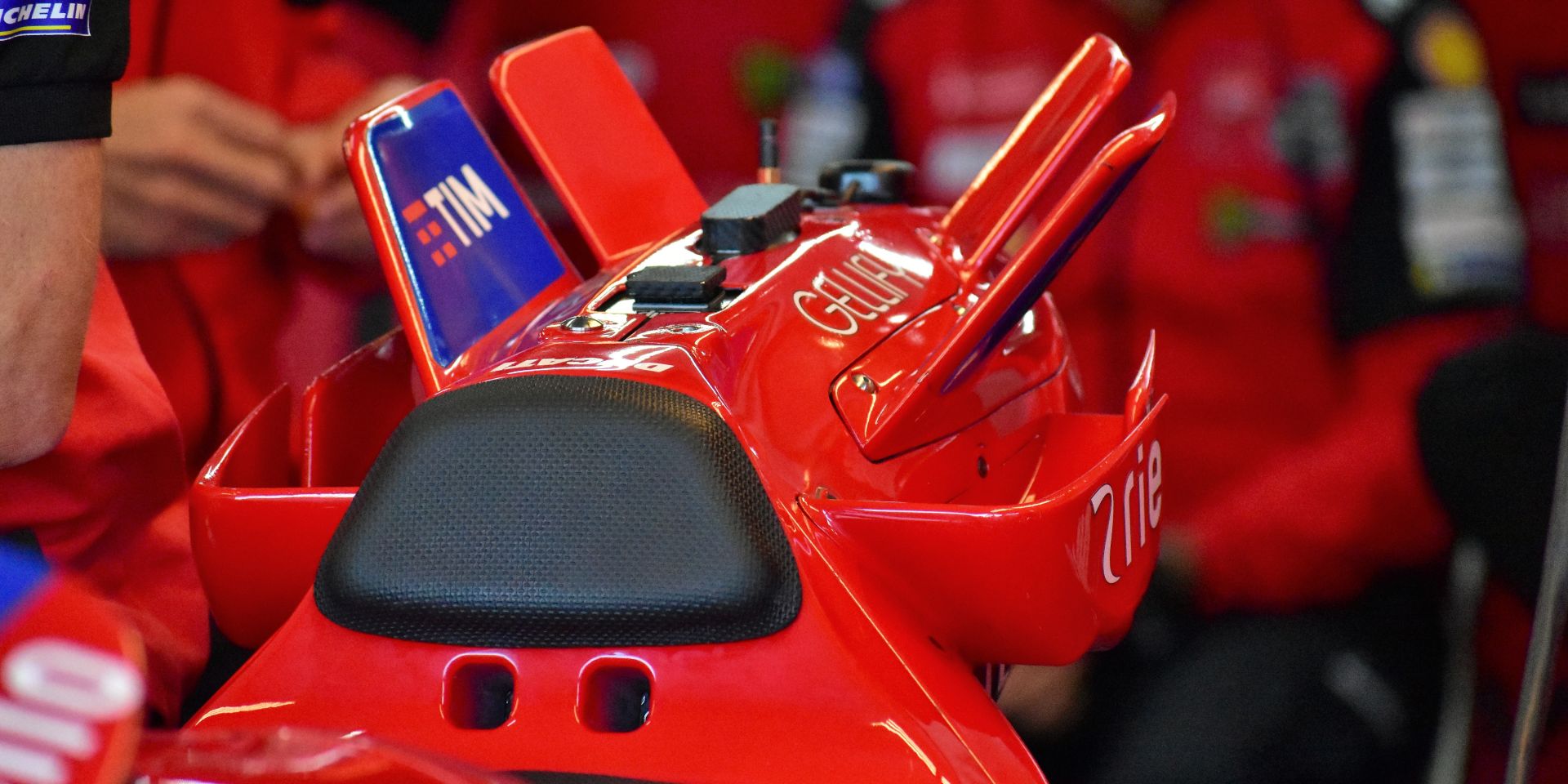 The seat wing device on the Aprilia RS-GP is mounted at a high angle of attack – note the angle of the seat wing compared to the wings on the nose of the fairing. This suggests that it is working in dirty air to maximize the downforce it can generate. It also suggests that it is most effective in applying downforce during braking, when the rider is either dangling the inside leg or is sticking their inside knee away from the bike. In that moment, the wing is exposed to cleaner airflow and the top speed-sapping drag from a wing at a high angle of attack is not a concern, as the rider is trying to slow the bike down.