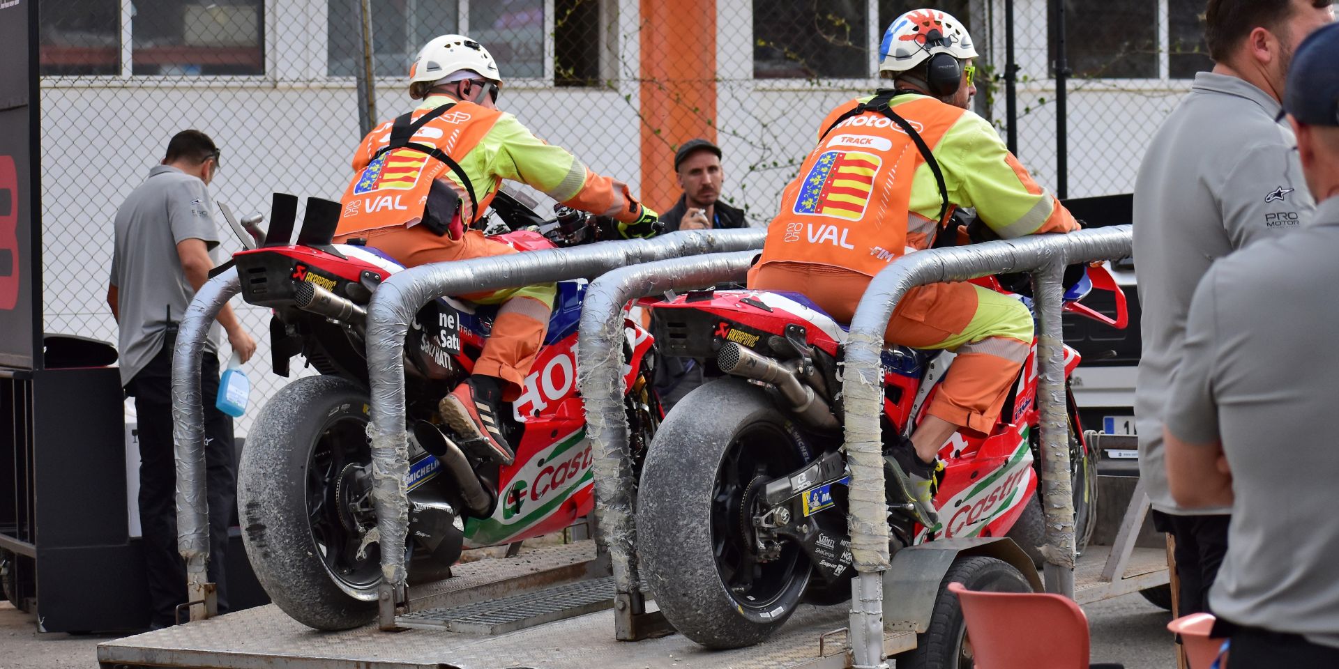Factory Honda riders Luca Marini and Joan Mir crashed out of the Sprint together. In the past, when a Honda rider crashed, HRC used to send an employee on a scooter to the crash site with an elastic cover to hide internals that the damage might have revealed. While the RC213V is better than it was, there were no Honda employees trying to cover the wrecked machines in Valencia.