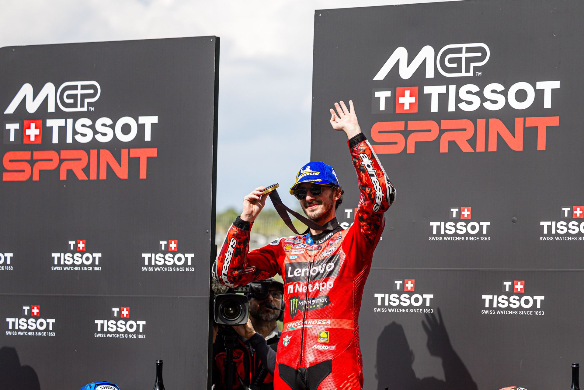 Francesco Bagnaia and the Ducati Lenovo Team win the Sepang Sprint starting from pole. Michele Pirro finishes twentieth.