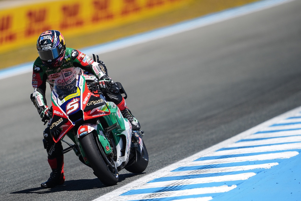 Fourth consecutive race podium in 2026 for Aprilia Racing. Four Aprilias in the top six in Jerez: Marco Bezzecchi second and Jorge Martin fourth. Trackhouse MotoGP Team’s Ai Ogura fifth and Raul Fernandez sixth.