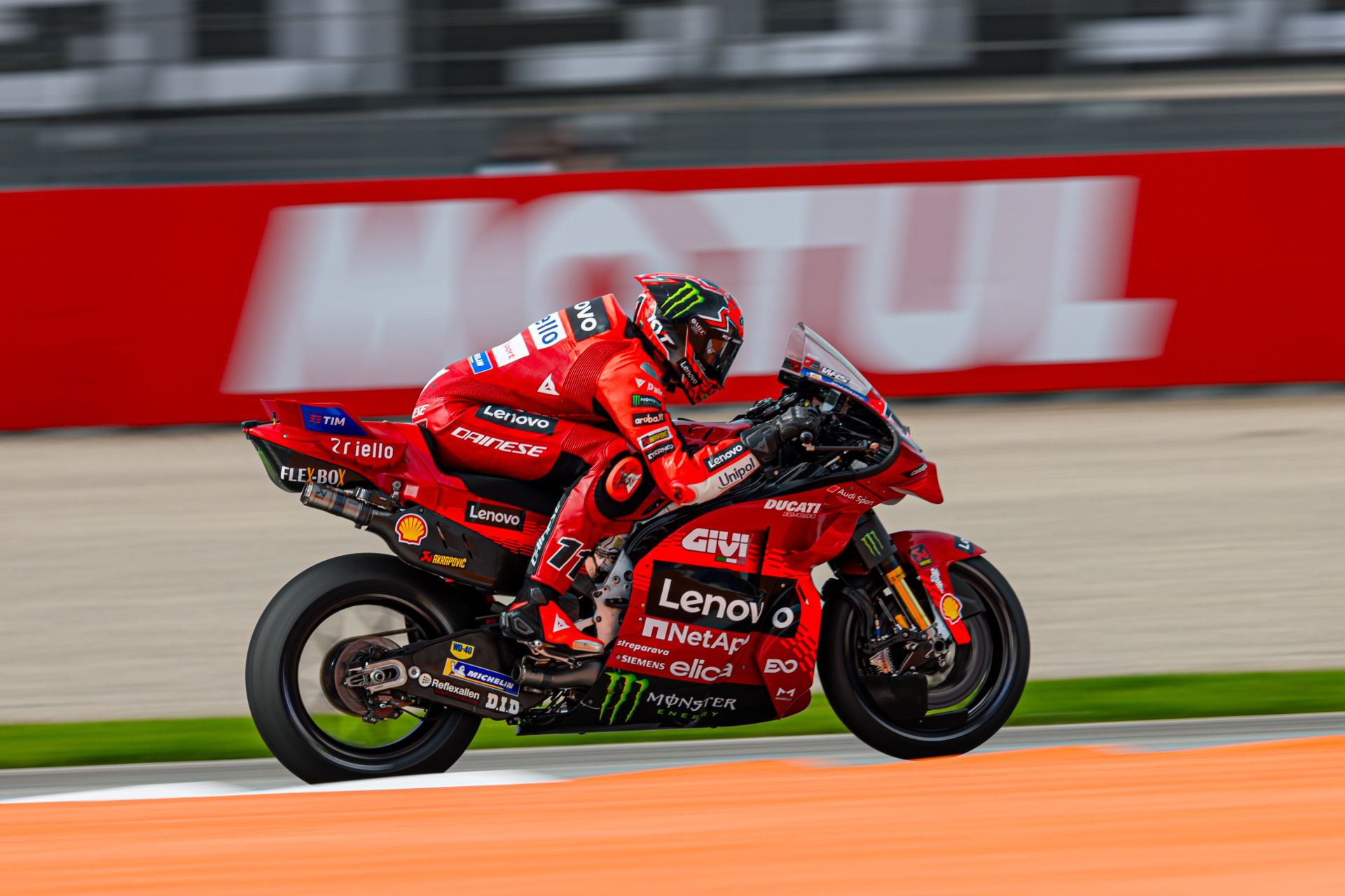 The Ducati Lenovo Team prepares for Q1 after opening day at Valencia: Bagnaia fourteenth in Practice, Bulega twenty-fourth.