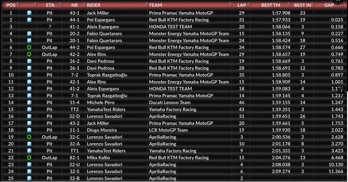 Three different manufacturers in the top three, covered by around a tenth and a half and Yamaha not just leading the way but seemingly finding their V4 feet. One more day awaits in the heat and humidity of Sepang before a couple of days ‘rest’ to gather up the energy for the full-time riders to tackle the track!
