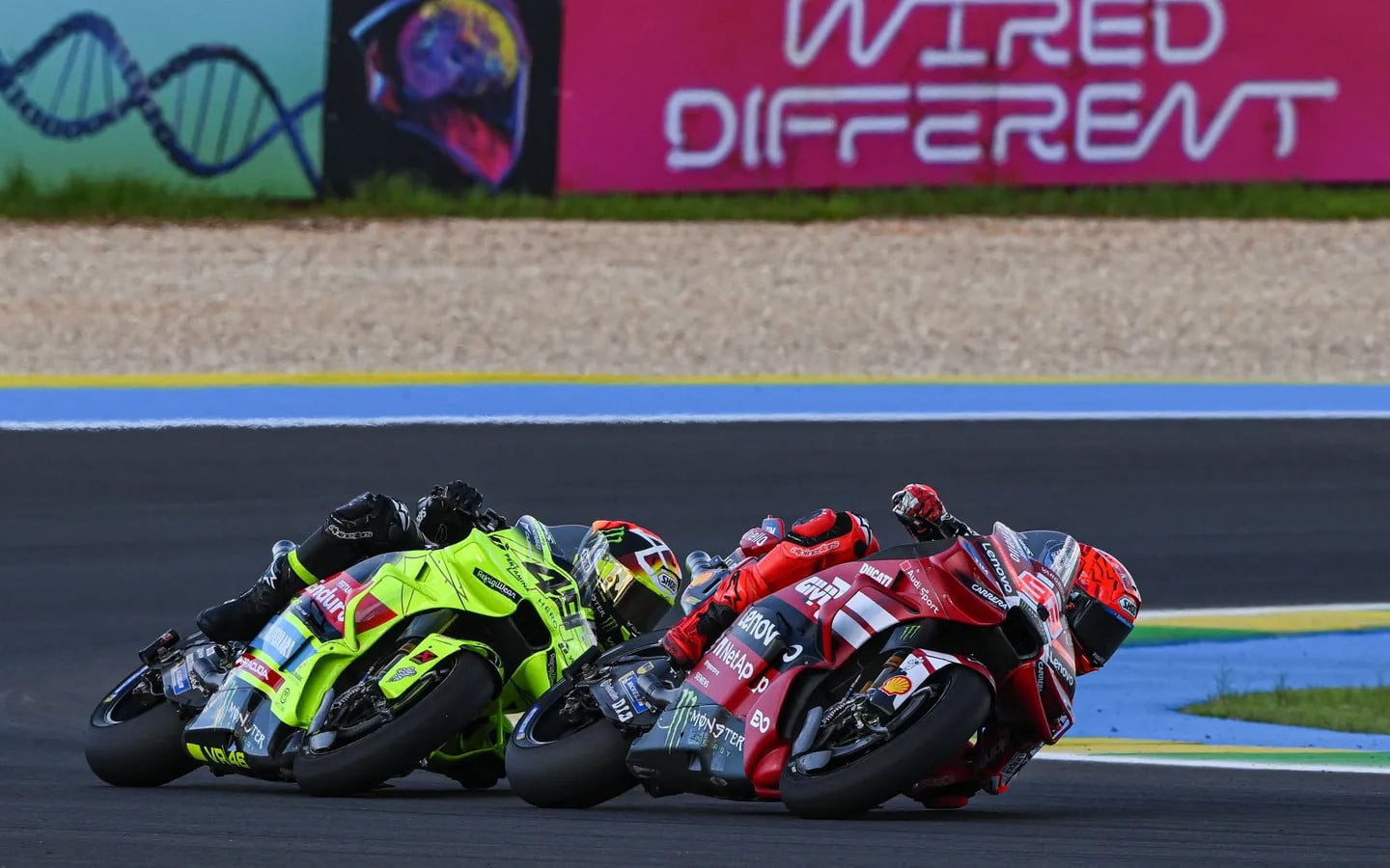 Meanwhile, Quartararo was stealing more of the limelight just behind – holding off Ai Ogura (Trackhouse MotoGP Team) brutally but cleanly. The #20 was digging in, and so was Marc Marquez as he started to reel in Di Giannantonio in the lead.