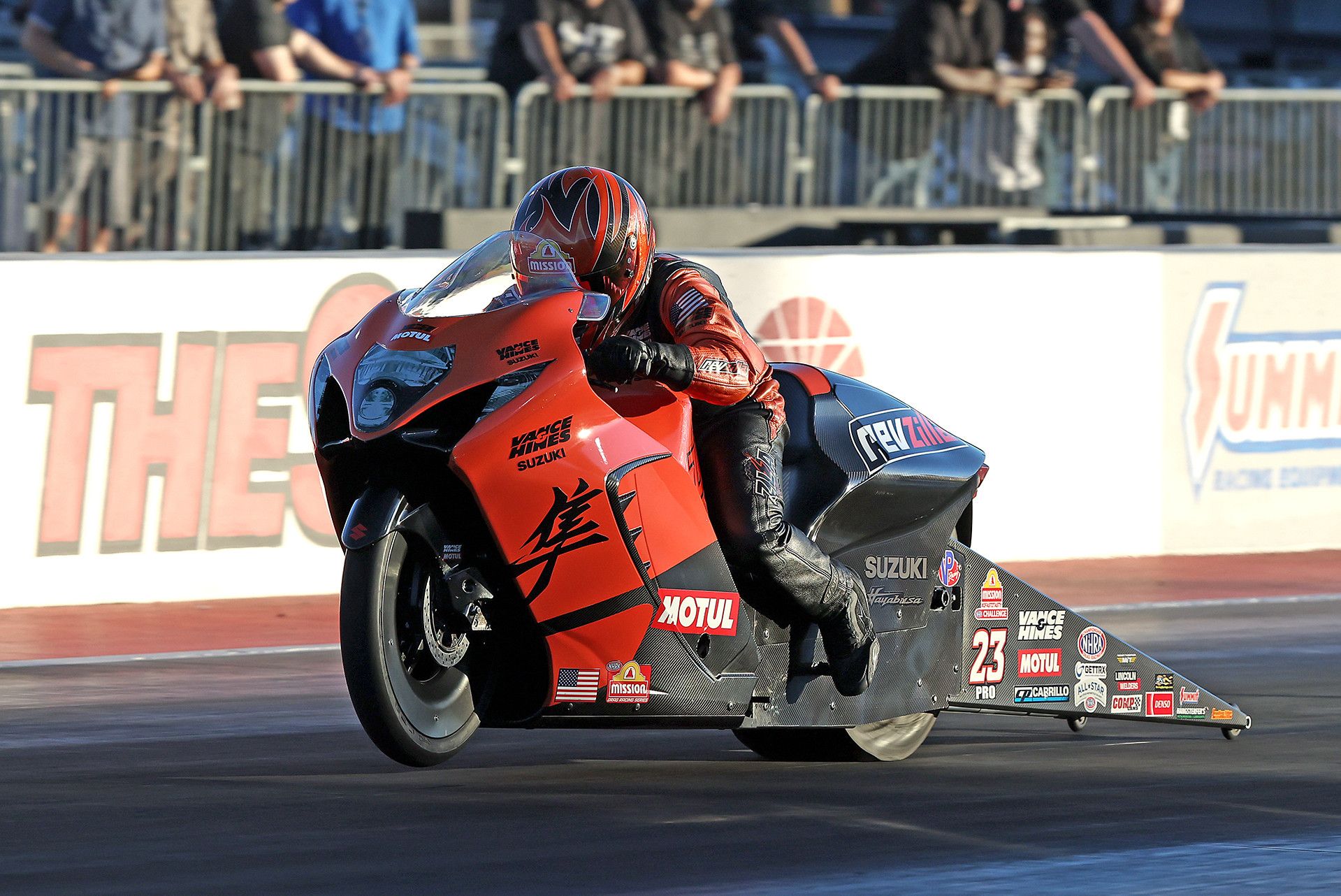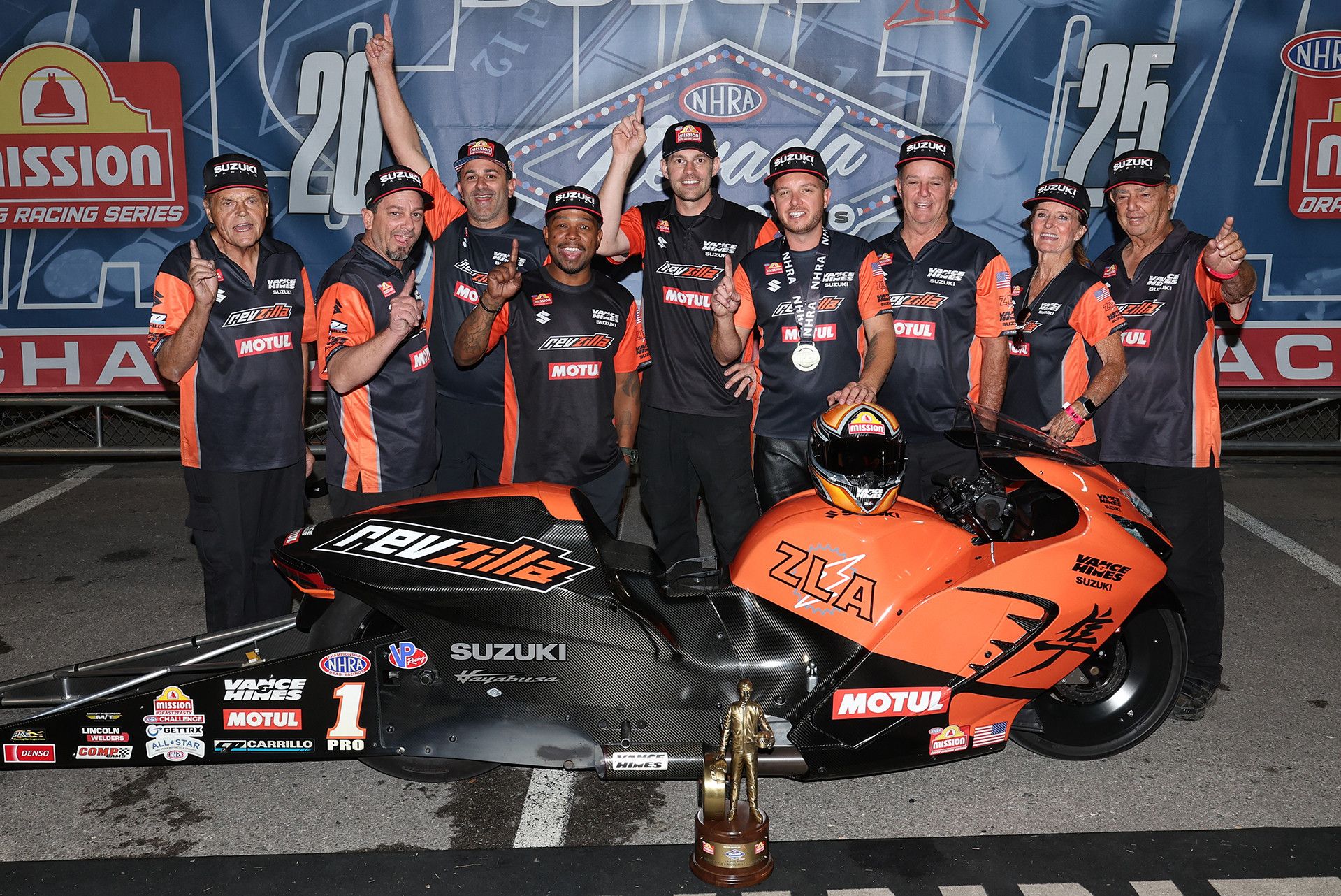 The RevZilla/Motul/Vance & Hines Suzuki team will close out the 2025 season November 13-16 at the In-N-Out Burger NHRA Finals at In-N-Out Burger Pomona Dragstrip in Pomona, CA.