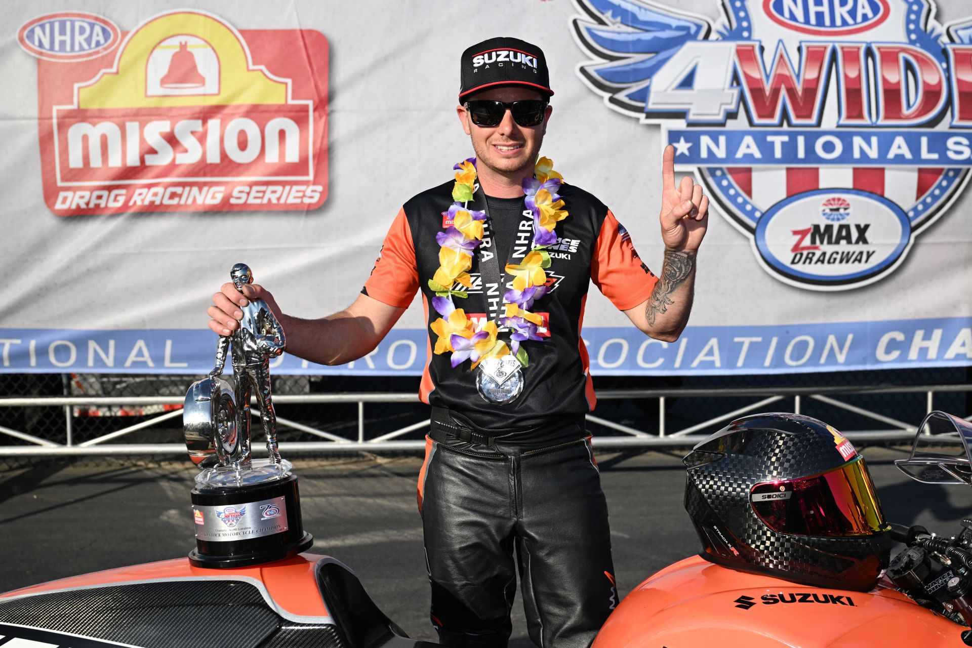 “It was an awesome weekend. I was feeling great from the first pass, and it continued all the way to the final. Andrew Hines was on point with the tune up and everything was just clicking. I’m beyond ecstatic about how it went,” Herrera said. “Having four Vance & Hines Suzuki engines in the final, that’s just incredible for the whole team too.