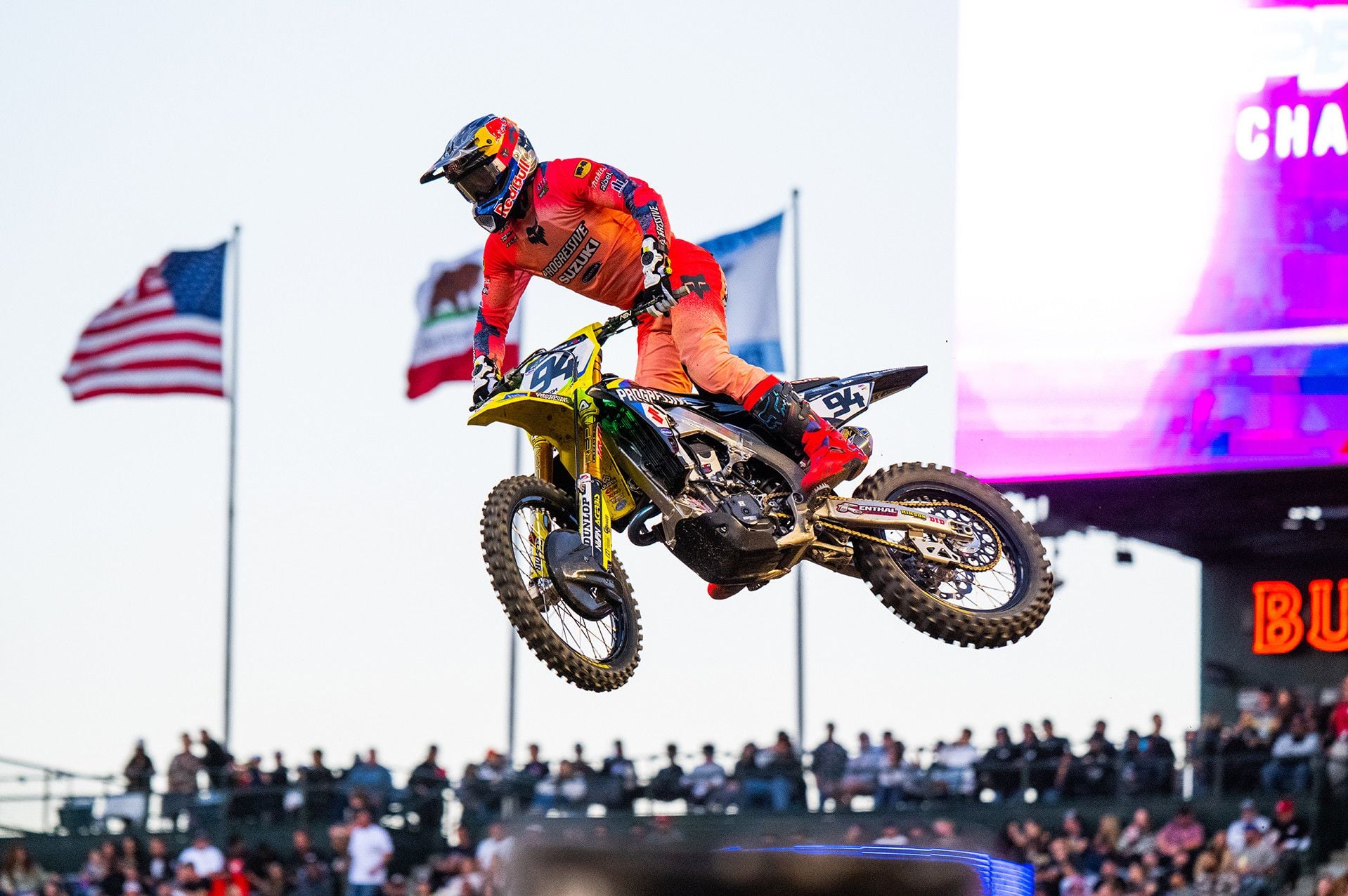 Suzuki’s Ken Roczen charges to second at Anaheim Supercross opener.