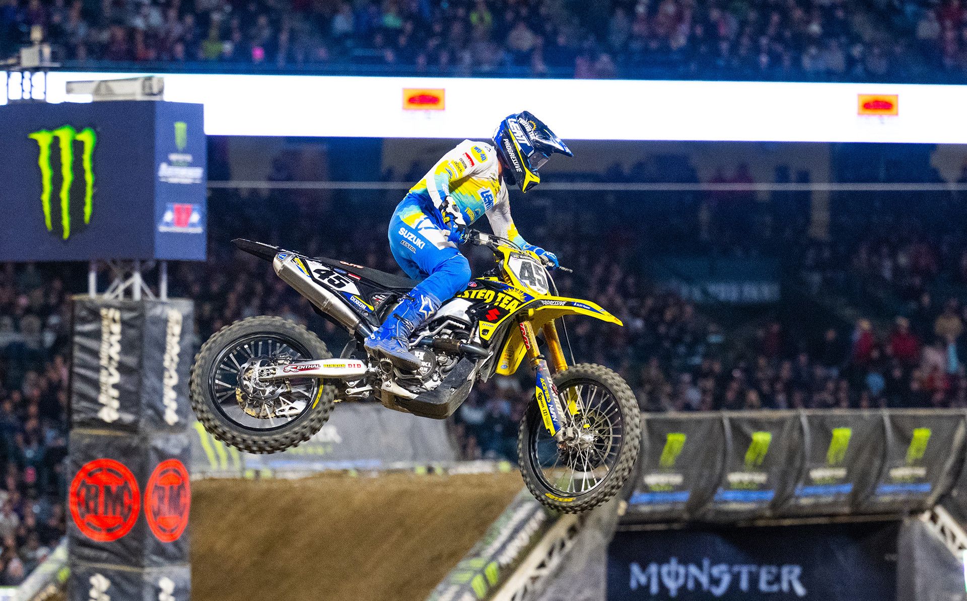 - Jason Anderson debuted his Twisted Tea Suzuki RM-Z450 with podium heat race and top-five main event results