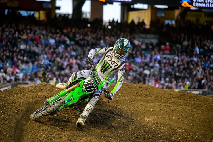 Both Monster Energy Kawasaki riders lined up behind the gate for 450 Heat 2. Sexton rocketed off the start to grab the holeshot and quickly lead the field around the track. On Lap 2, Sexton suffered a setback as he went down on the face of the over-under tunnel. He rebounded just outside the Top 10 and put his head down to finish the race in fifth place. Marchbanks had a less-than-ideal start and got shuffled back near mid-pack. After experiencing some challenges throughout the race, the No. 36 finished just outside of a qualifying spot in 10th place, sending him to the Last Chance Qualifier.