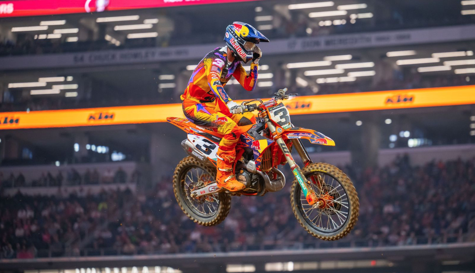 Eli Tomac and the Red Bull KTM Factory Racing team claimed a well-earned second-place finish at Arlington’s seventh round of the 2026 AMA Supercross Championship, recording his fifth podium of the season tonight in Texas.
