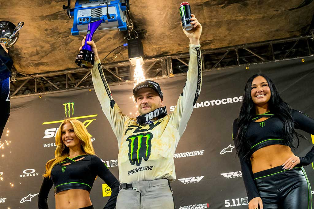 Monster Energy Yamaha Star Racing’s Pierce Brown earns an epic comeback win at the 250SX East opener, capturing his first career victory in the class.