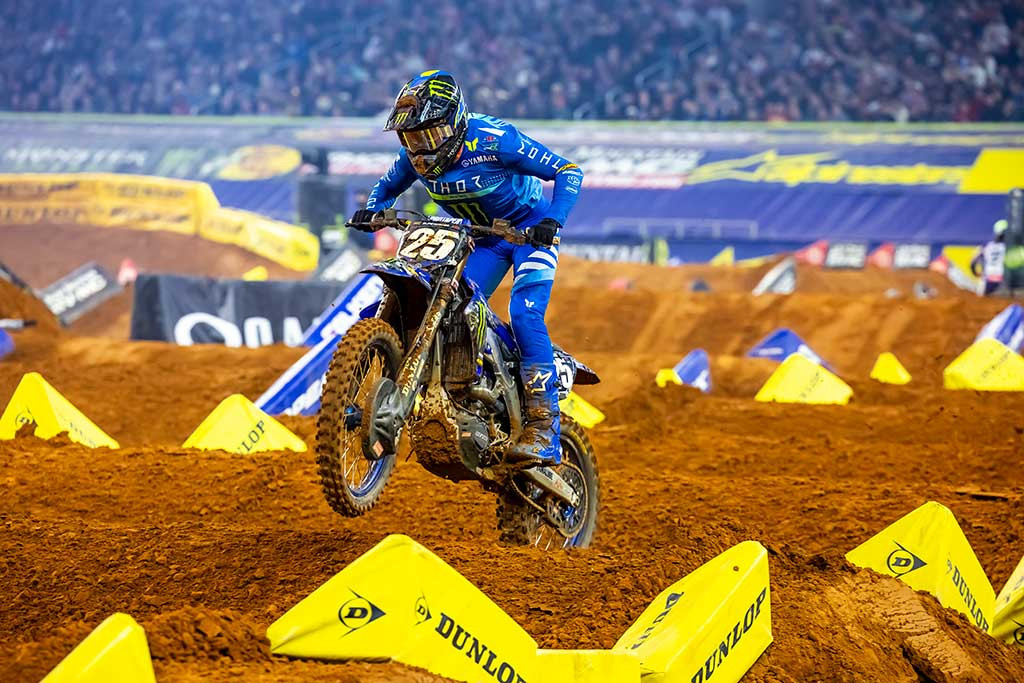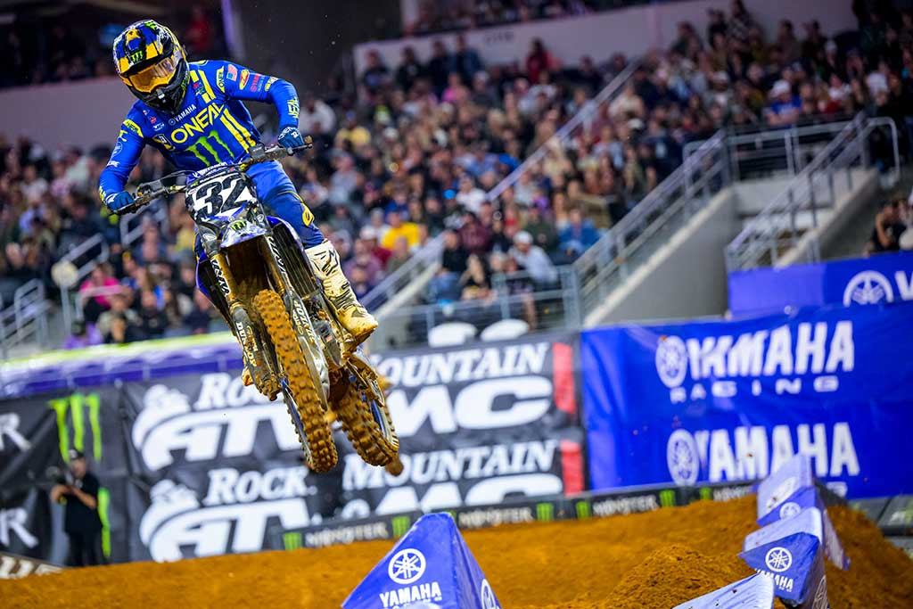 Monster Energy Yamaha Star Racing’s Cooper Webb finishes third, with teammate Justin Cooper scoring a top-five result in tricky conditions at Arlington Supercross.