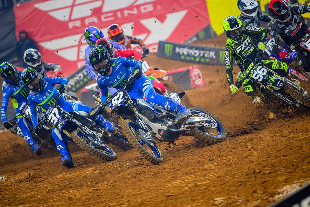“The first qualifying session didn’t go as planned,” said Rich Simmons, Monster Energy Yamaha Star Racing’s 450 Team Manager. “So we made a few adjustments, and different line choices with the guys, and improved our qualifying. In the heat races, we didn’t get good starts, which we knew we needed to improve for the main event, and both guys did that.”