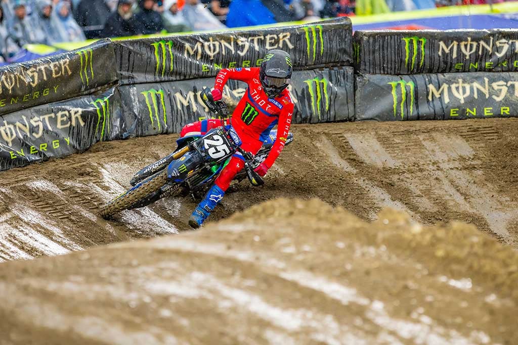 As conditions worsened with continued rain, Thrasher didn’t get the start he was looking for in the final main but managed the race well, navigating the deteriorating track to finish fourth and secure the overall victory with a 2-1-4 score. The victory marked Thrasher’s first of the season and the seventh of his career, which also extended the team’s win streak and made him the fifth Monster Energy Yamaha Star Racing rider to win in the 250SX class this year.