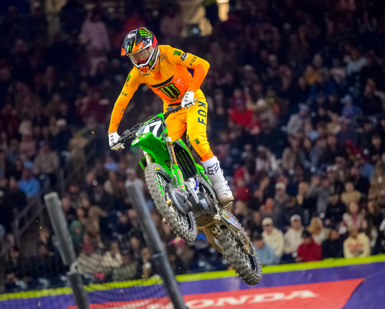 “It was a tough night, but the last moto was better,” Anstie said. “I went down in the first one and came out 10th, then in the second moto, I got a bad start and got to sixth. The last one, I had a decent start and rode around in second. It’s not my best work, but we’ll go to work this week and come back swinging in Phoenix.”