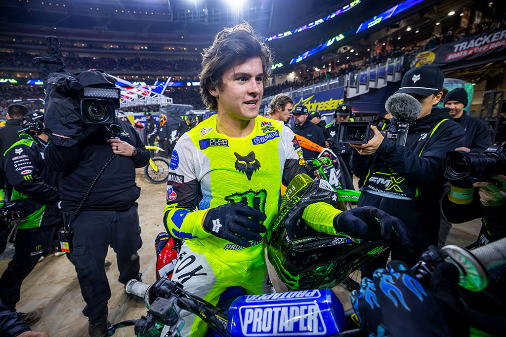 Victory in the third and final outing of the night was enough for the double 450SX Champion to claim fourth place overall, and contributed valuable points toward his Supercross championship tally entering Glendale next weekend. He now holds a four-point advantage in the standings.