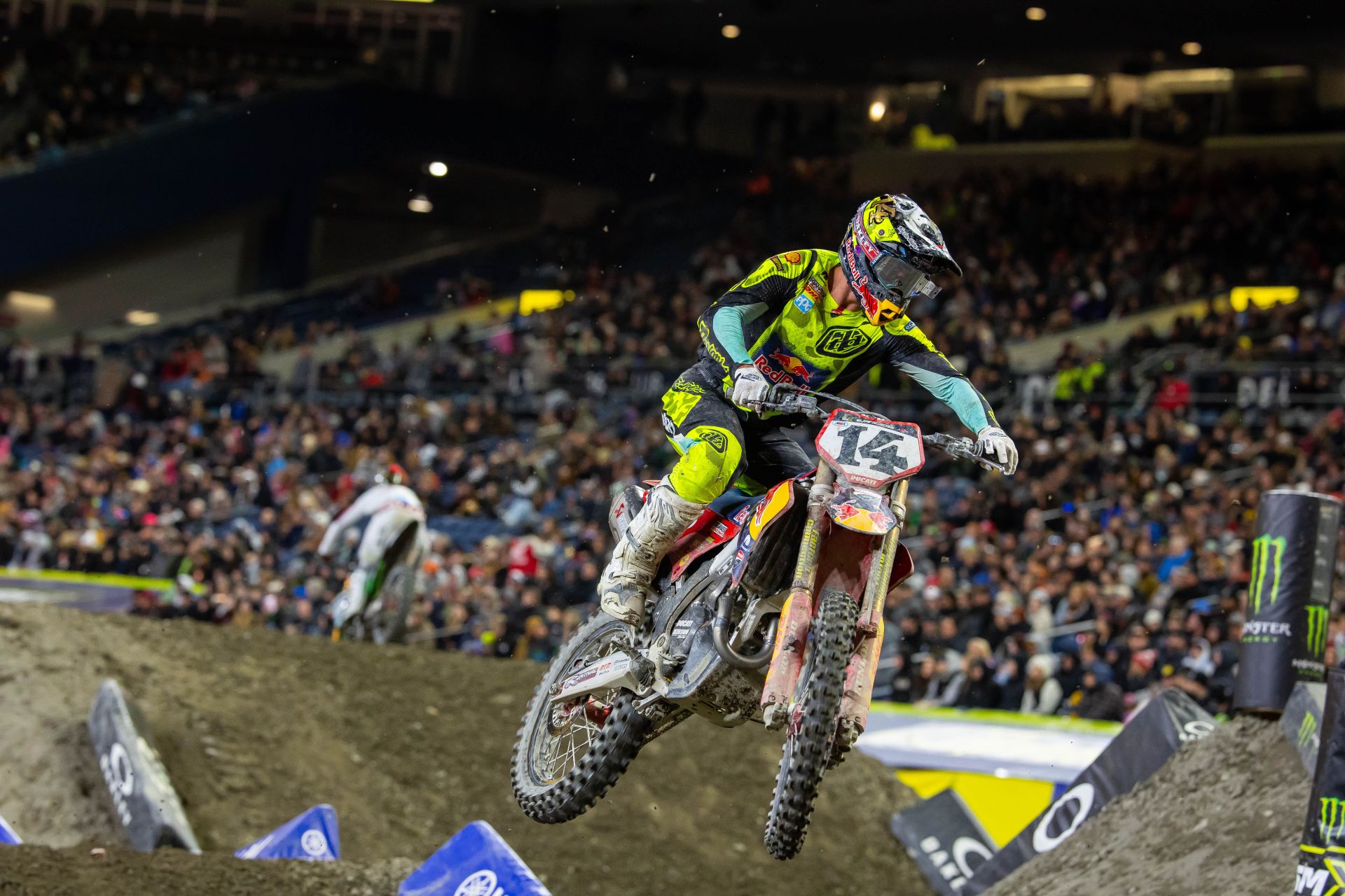 After pure domination from Monster Energy Star Racing’s Haiden Deegan at the last four rounds, Round 6 looked like more of the same. The reigning champ topped qualifying, grabbed holeshots, and won his heat race at Lumen Field. It was shaping up to be another runaway. Then Levi Kitchen, the home state hero, changed the script.
