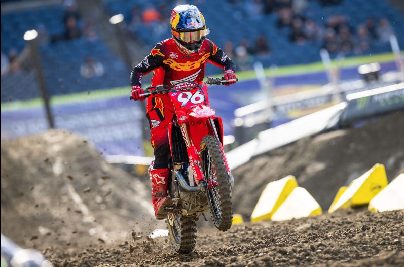 While round 6 of AMA Supercross in Seattle didn’t go the way Hunter Lawrence had planned, the Honda HRC Progressive rider mitigated the impact from what could have been a more detrimental day, as he ultimately finished in fourth place—good enough for him to hold a one-point lead in the title chase as the series travels to Arlington, Texas.