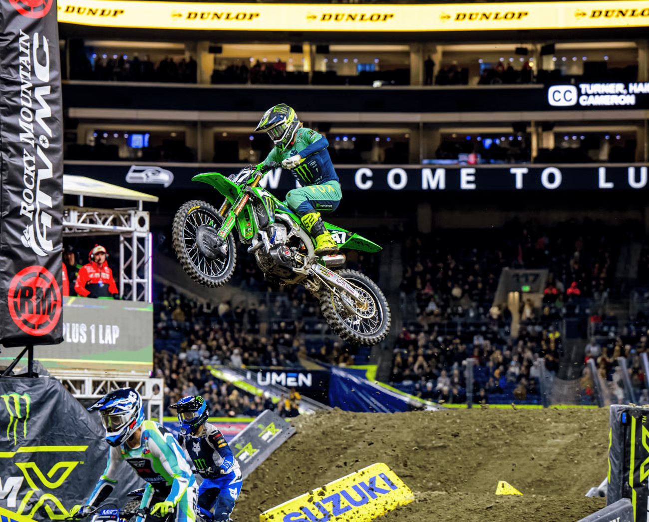 Monster Energy® Pro Circuit Kawasaki rider Levi Kitchen had the hometown crowd on their feet as he delivered a standout performance to take second place in the 250SX Main Event at Round 6 of the Monster Energy AMA Supercross Championship in Seattle. Teammate Cameron McAdoo powered through adversity to secure a solid fifth-place finish. Monster Energy Kawasaki rider Chase Sexton put in a solid effort on the day to take home fifth place in the 450SX Main Event. Garrett Marchbanks rebounded from a late race incident, but without enough time left in the race, the No. 36 Kawasaki would ultimately finish 22nd.
