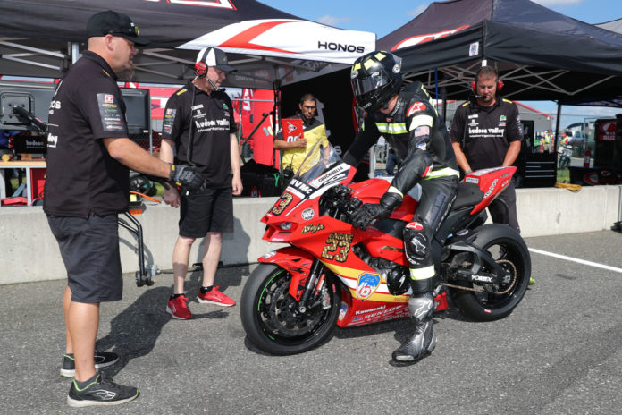 De Keyrel started the weekend with a 53-point lead over second place in the Twins Cup standings and needed to finish Saturday’s race with at least a 50-point advantage to secure the championship. Marcon and De Keyrel took part in a test day at NJMP of Sept. 3, which helped the team develop good setups for its Aprilias — something that has been a struggle with campaigning a newly-homologated-for-2021 motorcycle this year.